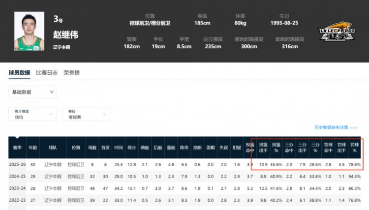 我只说一句:复出以后赵继伟整体投篮数据还不如胡明轩。