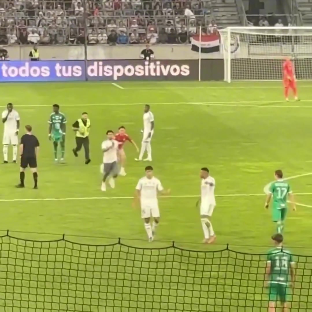 宠粉!球迷冲入场内找姆巴佩自拍,姆总拦住保安满足合影